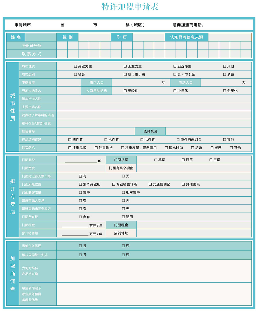 開設維科家紡專賣店的要求凡具備家紡零售經營資格的法人和自然人均可根據自身經驗、資金實力和業務區域等具體條件,任意選擇以下幾種加盟方式: