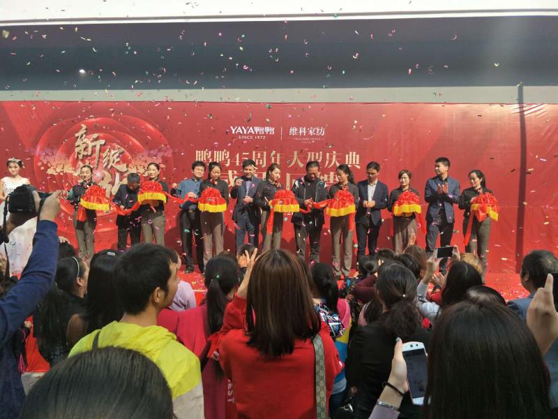 2017年10月28日,維科集團旗下全國首家集合店在江西共青城市盛大開業。開業慶典活動人氣爆棚,活動進行兩天銷售突破10萬元。28日早上以歡快的鑼鼓聲開場,吸引了店鋪周邊的共青市民駐足。維科家紡用床單和被套做裹布秀出場,模特優雅的步伐,配合主持人對每款產品FAB的介紹,讓廣大消費者對維科家紡歐了全新的認識。隨后呀呀實體店管理公司南大區經理李海泉發表開業致辭。事業部副總經理楊躍輝、維科家紡總經理王吉鋒、鴨鴨股份公司總經理徐相圣等領導進行開業剪彩,并陪同當地政府有關領導到敬老院進行了愛心捐贈,相關媒體全程跟蹤采訪報道。此次開業慶典活動,不僅提升了鴨鴨品牌的美譽度,更擴大了維科家紡在當地的知名度。